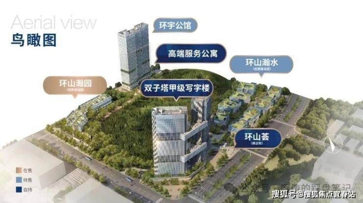 •④业态:集合双子塔甲级写字楼、星级酒店、低密度组团(环山瀚园、环山瀚水)、环宇公馆、商业等一体的城市综合体