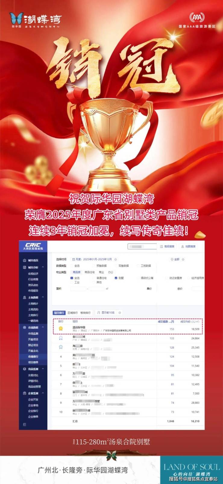 2025年际华园湖蝶湾以网签153套,持续蝉联广东省别墅类产品销冠。