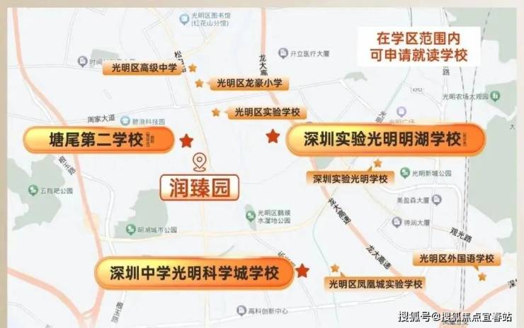 社区内配置幼儿园,西北侧地块为九年一贯制学校(规划中),与项目一路之隔。规划3所九年一贯制学校、其中一期学校[深圳实验光明明湖学校]2025年9月已开学(信息源自深圳光明学校公众号),项目3公里范围内涵盖[深圳中学光明科学城学校]、[深圳市光明实验学校]等。