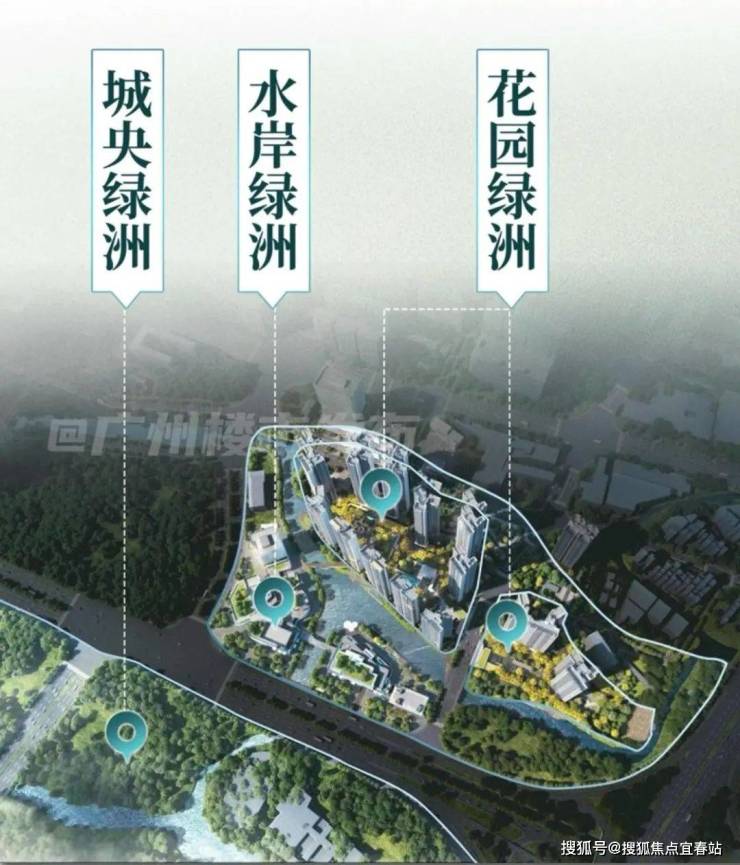 享受“一河环抱,两岸三园”的优美环境中,也叫“三洲之上”