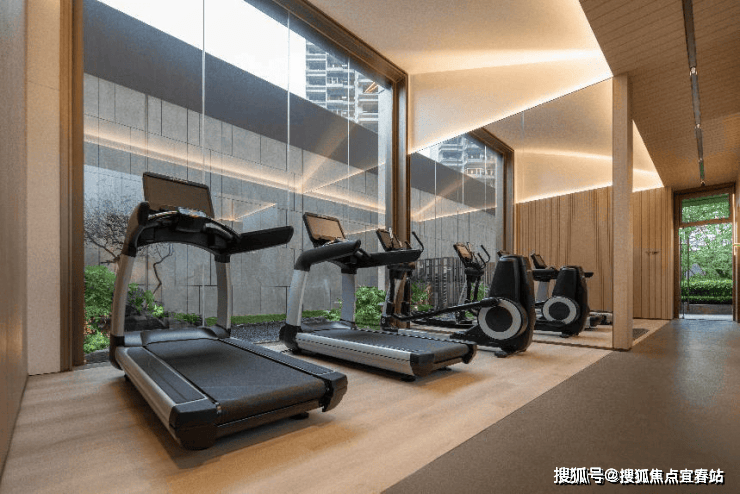 24小时健身房内设有完备的有氧运动区和力量训练区,全面满足各年龄层业主的运动需求,让热爱健身的业主无需远行,即可享受专业级的健身体验。