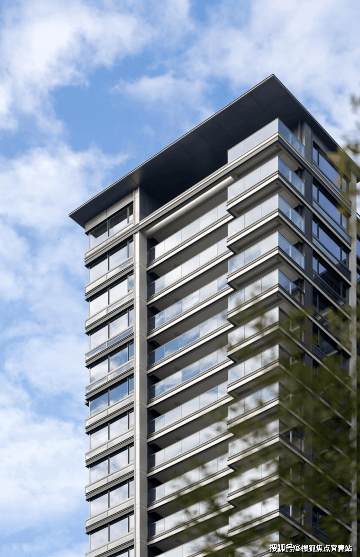 以松湖润府的楼体细节为例,项目不计成本的将铝板以及更高品质的铝板飘板,运用到建筑基座、主体轮廓线条、塔冠等各处细节中,让金属和真石材的质感将建筑与环境进行了有机融合,不仅审美抗打,而且熠熠生辉。