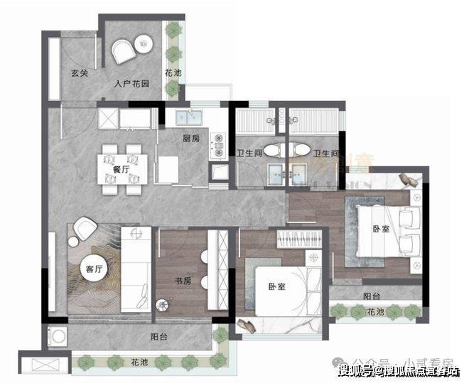 【约78㎡ 2+1房2厅2卫】四开间采光,全明通透户型, LDKG一体化客餐厨灵动设计,客厅&次卧空间随心组合,约5.5米双面宽阳台,景观视野开阔,豪宅配置,独立主套,开间达3.8M