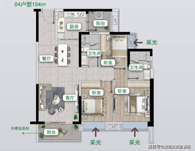 120㎡雙陽台南北對流,四房兩廳兩衛