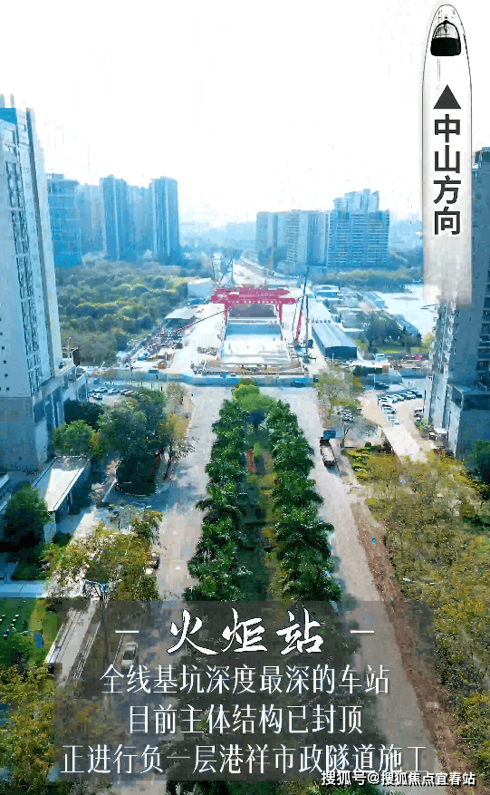 直线距离南中城际火炬站约2.8公里(百度测绘),届时,就可2站到马鞍岛,3站到南沙,12站到珠江新城。