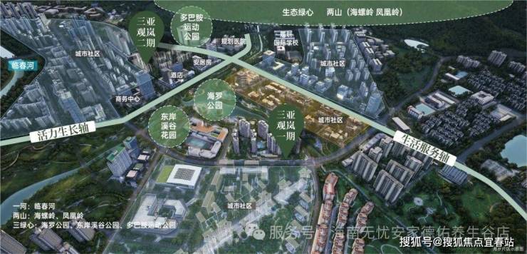 板块借“一河两山三绿心”织就三亚城芯罕见“山水绿网”,让自然与城市资源双向赋能,每一步皆穿行于自然,重塑城芯生活价值。