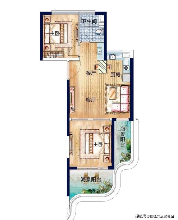 【C户型】81㎡ 精致两房一厅私密空间布局,双曲线阳台设计,盛揽壮阔外海海观。