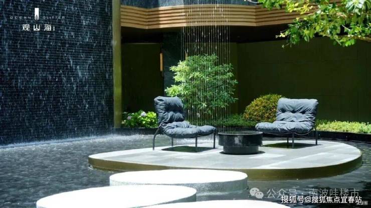 项目打造的近9米水庭院瀑布实景绽放。论形制、论规模,这处园林造景在前海乃至整个深圳都很罕见!