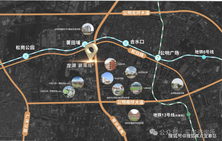 立体交通网络,连接湾区:项目近邻地铁6号线、13号线、18号线(规划)、龙大高速、外环高速。快速通达福田CBD、南山科技园、宝安国际机场,是真正的“北部湖区之心”。