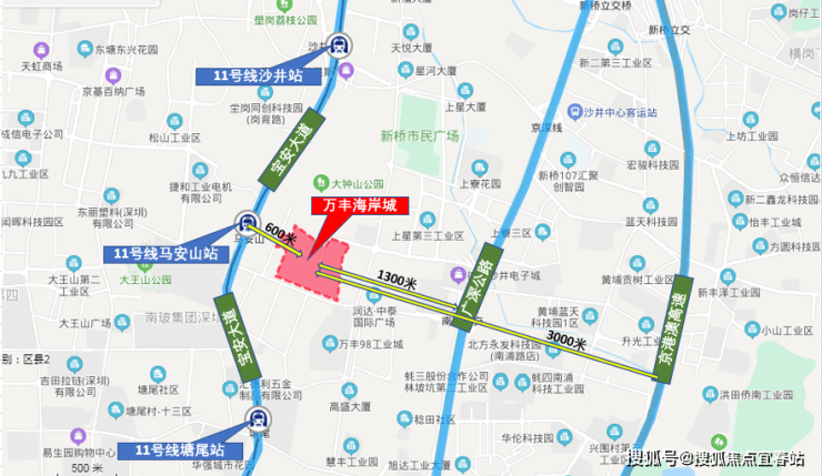 万丰海岸城,这座矗立于宝安“西部城市中心”的超级城市综合体,以其卓越的地理位置和完善的配套设施,自2021年首批产品入市以来,便持续引领着市场的热潮,成为深圳西部的一颗璀璨明珠。项目紧邻地铁11号线马安山站东侧约300米(地图测量数据仅供参考),不仅占据了宝安区重大设施落实的核心区域,更是新桥新中心打造的焦点所在。