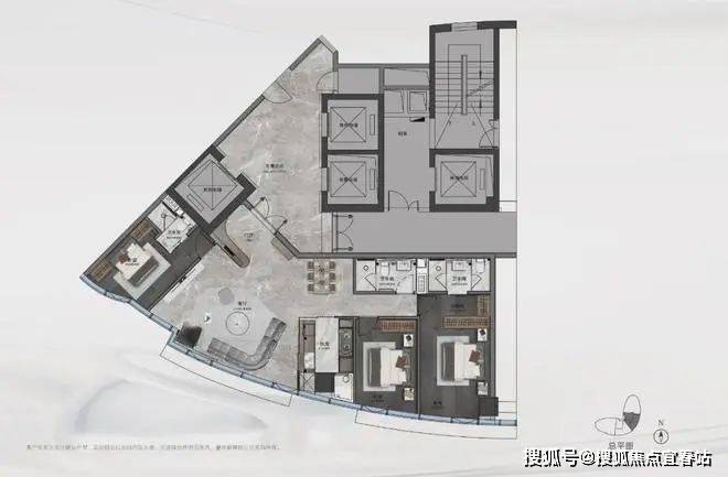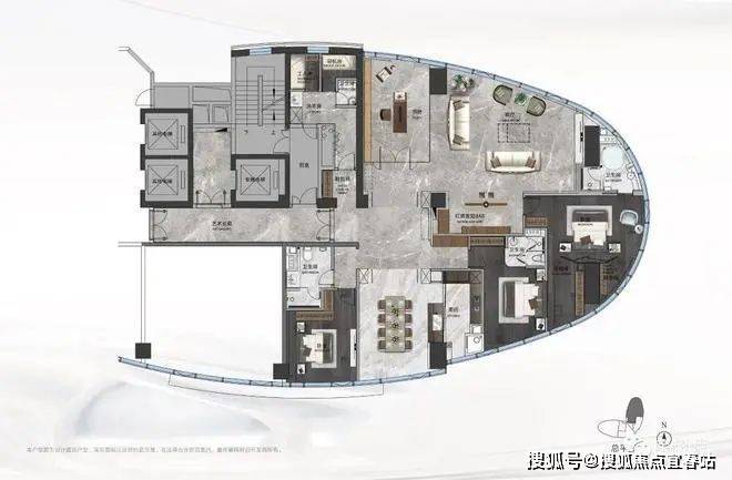 【D户型】⭐️“观·天赢”建面约:357㎡,三室两厅四卫