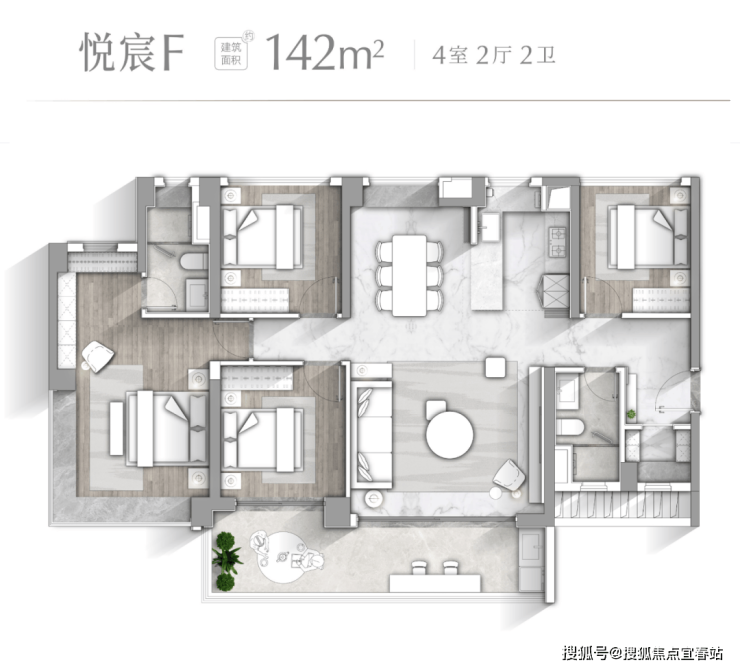 厅卧空间灵活改造约8.4米双面宽阔景阳台,匹配全生命周期使用