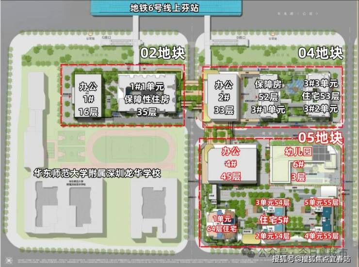05地块,3栋54-64层超高层住宅,1栋45层写字楼,1栋12班制幼儿园。