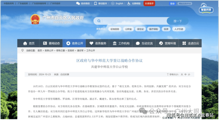 2024年10月18日,白云区政府与华中师范大学签订战略合作协议。