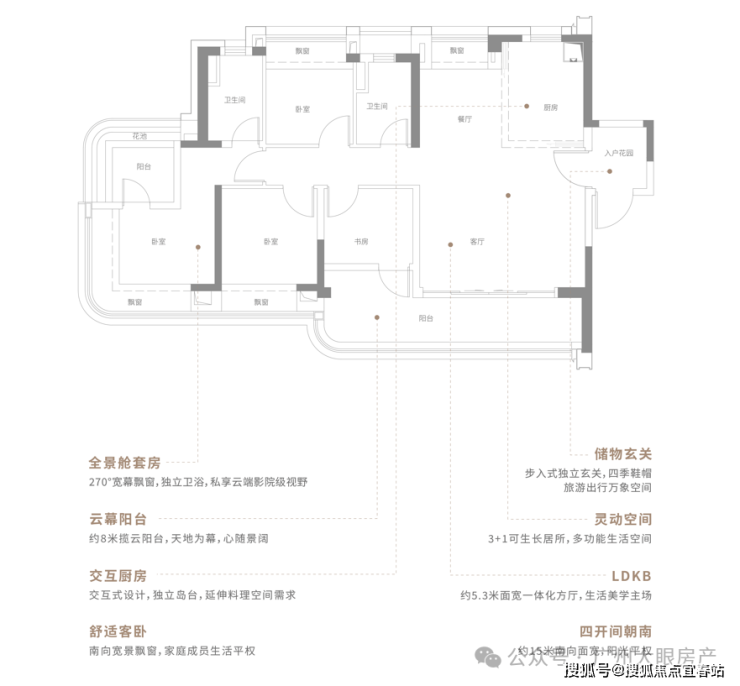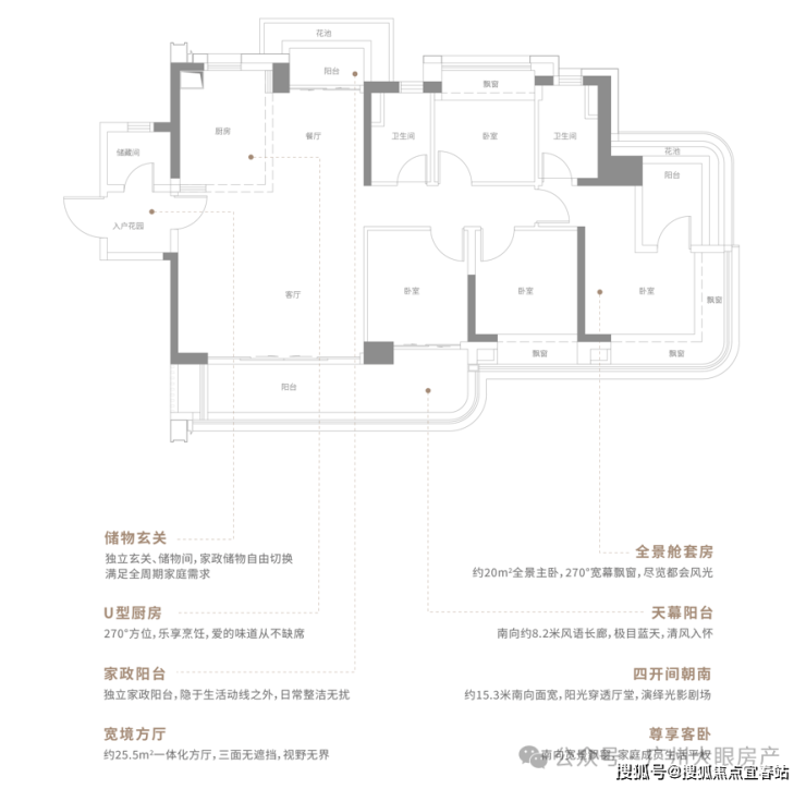 中间C位的3栋是两梯两户大平层,建面约226平