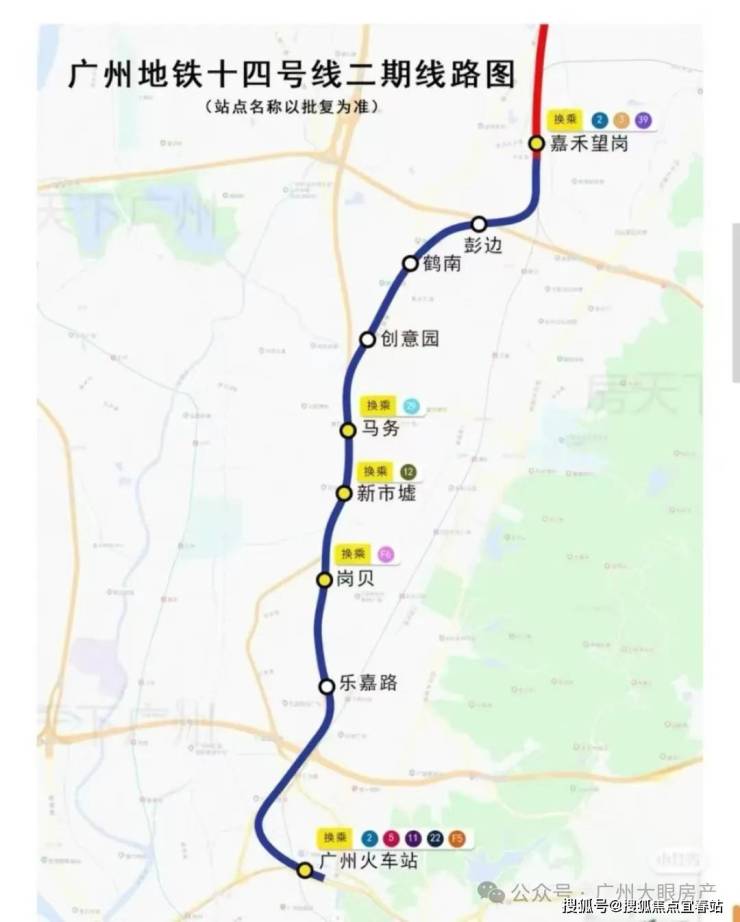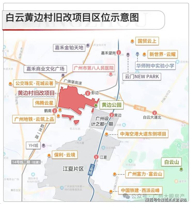 地铁2号线:距黄边站(运营中)直线距离约800m,3站白云新城,直达江南西,广州南。1站换乘嘉⽲望岗(地铁2/3/14号线交汇)。