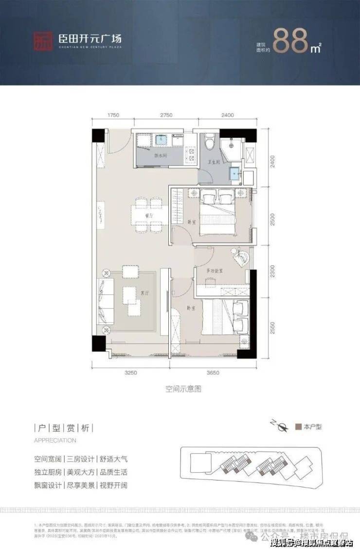 🏙 88㎡三房,2.7万/㎡起,总价约238万起