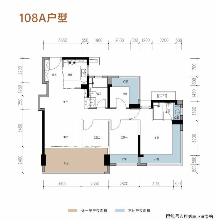 相比89E户型,飘窗设计相对较少,整体赠送空间与市场主流产品接近,实用率约95%。户型规划方正,动静分区合理,采用四开间朝南设计,采光和居住舒适度较好,算是中规中矩的产品。