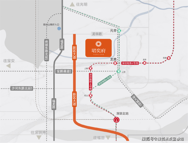 卓越珺奕府坐落深圳市龙华区布龙路与和平路交汇处,地处繁华的龙华商业中心超级商圈,距离4号线龙胜地铁站约500米,距离6号线元芬地铁站约800米,距离红山地铁站2站,距离深圳北站3站,享受红山和北站的城市配套资源,去往福田仅需6站,深大城际线(建设中)3站到机场,地理位置优越。