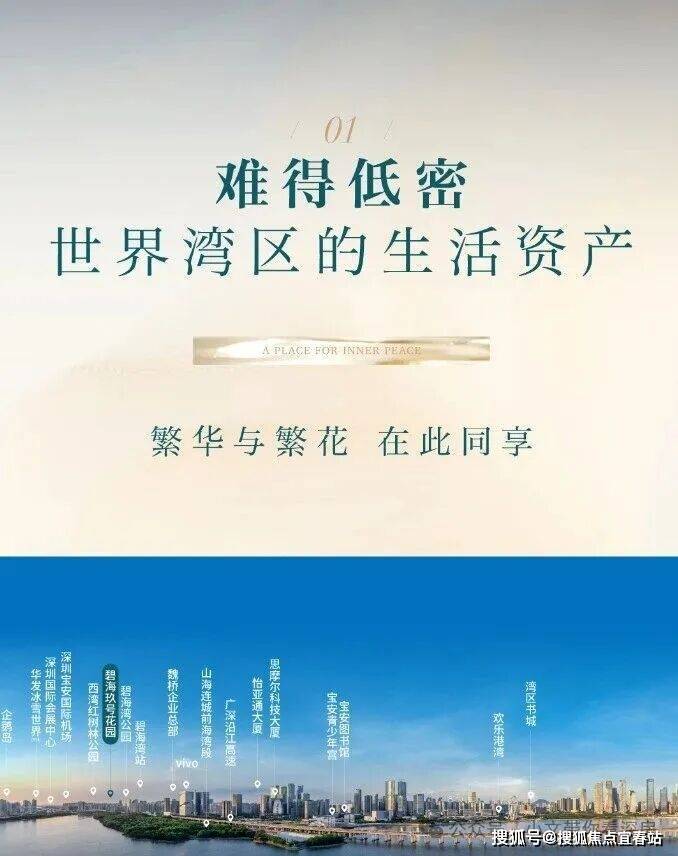 交通配套:项目距离11号线碧海湾地铁站直线距离约600米;西南侧直线距离约800米,步行10分钟内,1站到机场,3站到南山,7站达福田。