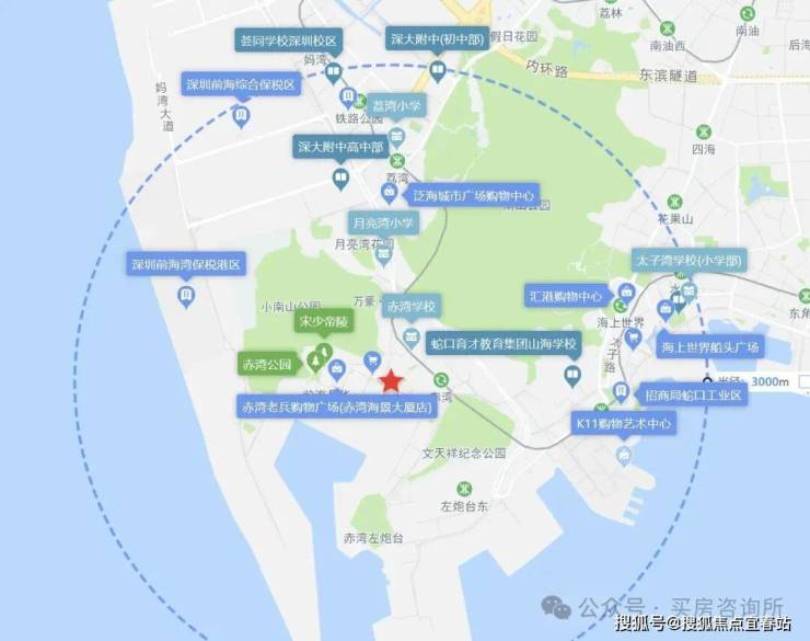 地块周边教育、商业配套,医疗配套有待提升,3km范围内有赤湾学校、月亮湾小学、太子湾学校、深大附中、K11购物艺术中心、海上世界船头广场、嘉盛荟商业中心、泛海城市广场等。
