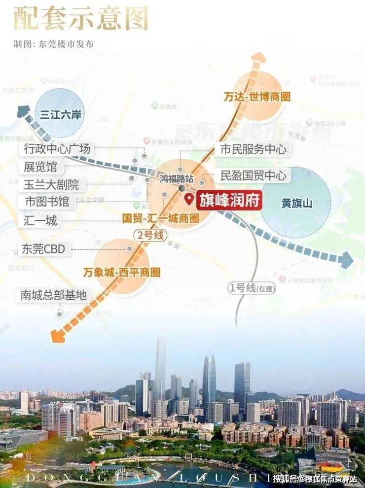 旗峰润府地处东莞中心城区的核心地带,毗邻大型商业综合体民盈·国贸城,直线距离东莞地铁1号线鸿福路站和新源路站仅约500米,坐拥双站地铁,交通便利。