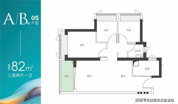 A/B座05户型-建面约82m² 三房两厅一卫