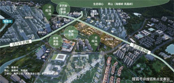 板块借“一河两山三绿心”织就三亚城芯罕见“山水绿网”,让自然与城市资源双向赋能,每一步皆穿行于自然,重塑城芯生活价值。
