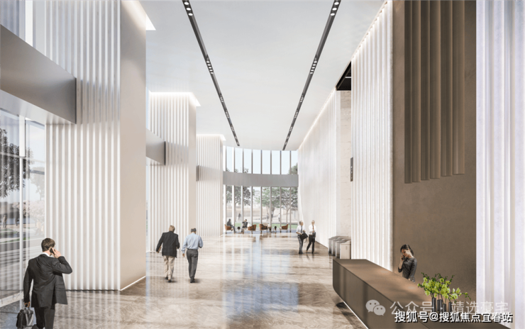 约11米层高,融合“光辉未来”设计理念,以充满能量的线性符号和天花模块群设计,打造核心大堂气派形象。