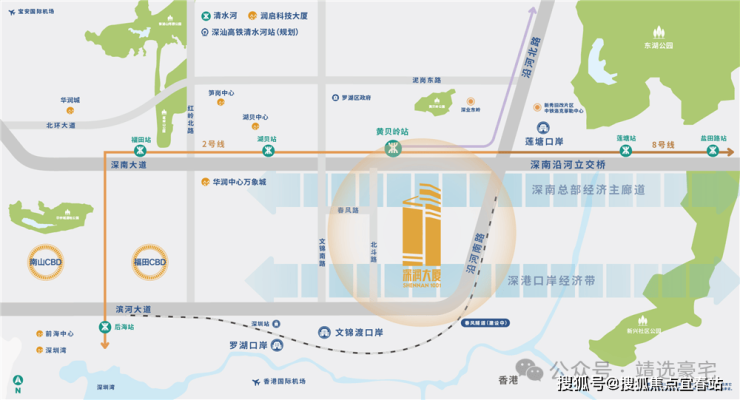 ①深南大道、滨河大道双主干道交汇,文锦路、春风隧道(建设中)便利通勤