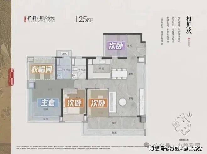 项目推出90-125㎡的三至四房户型,合理布局,兼顾采光与通风,适应不同家庭需求: