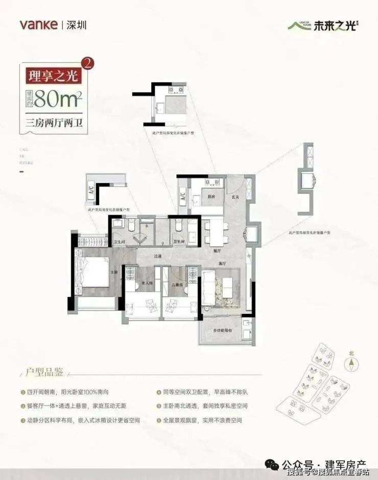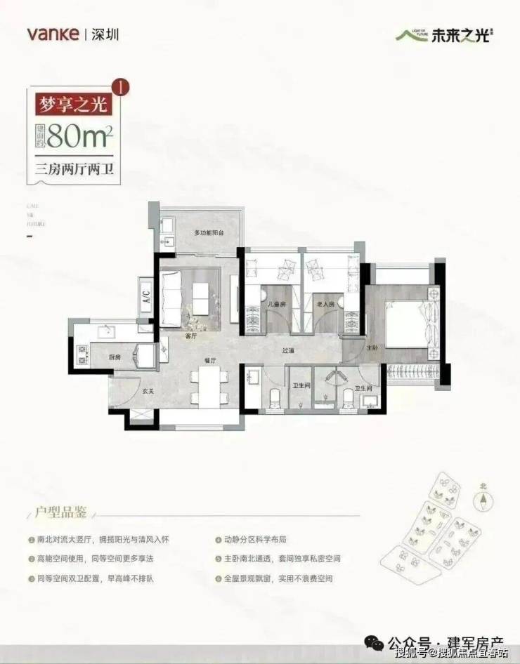 🔹约80㎡舒居三房,生活一步到位