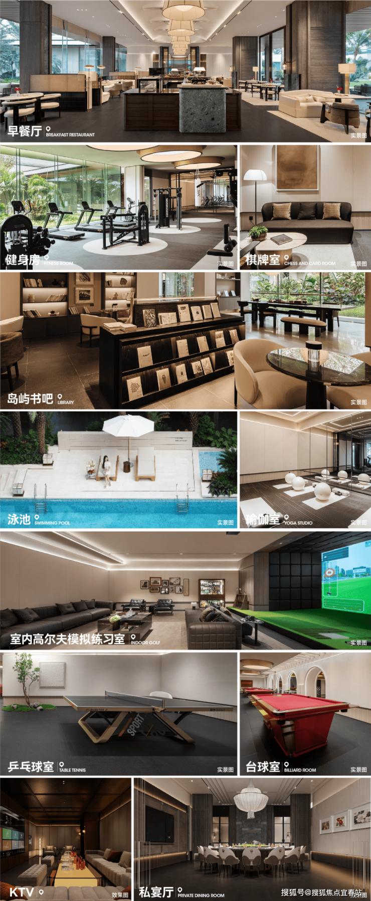 深度剖析高端酒店基因,创造功能与美感共融的9大社交空间,涵盖早餐厅、岛屿书吧、棋牌室、瑜伽房、健身房、近千平米度假式双泳池、KTV、私宴厅,配备约400㎡球类运动区,涵盖绅士运动桌球、国球乒乓球、全球社交通用语言——高尔夫模拟练习室等多元功能区,为旅居改善客群提供奢适服务。