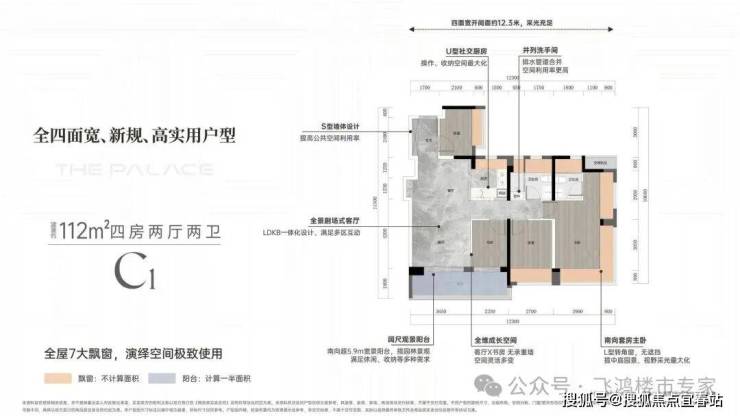 ,远超市场平均水平,这得益于建筑新规设计通过大面积凸窗、阳台等赠送面积。