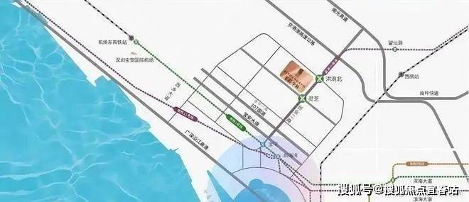 主干道:紧邻城市干路—宝安黄金发展中轴创业二路,覆盖新安东西向交通,连接留仙洞总部基地、宝安中心、后海、前海等重要片区。
