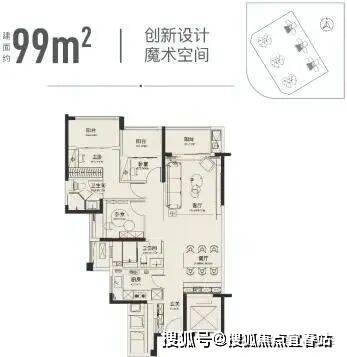 客、餐、阳台一体化设计,尽享通透舒适空间。
