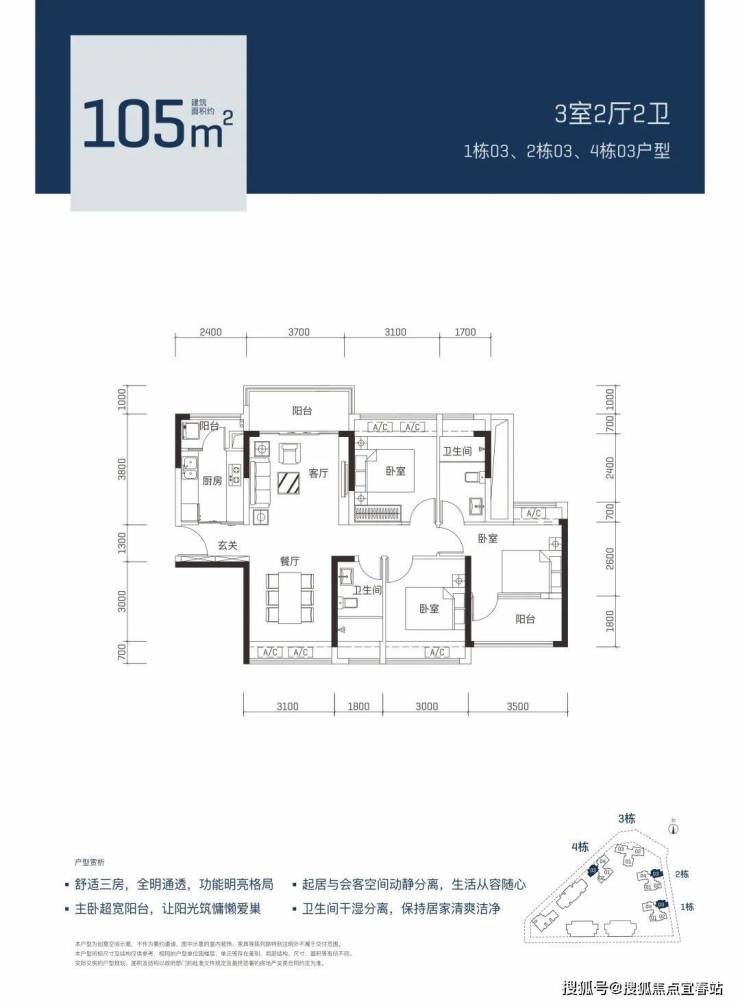 105平3房2卫520-550万