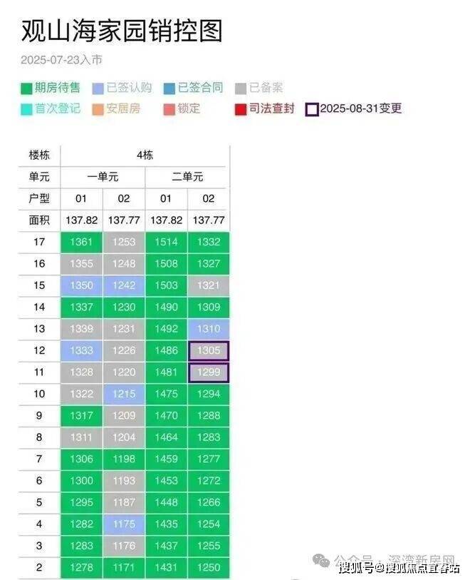 前海【观山海家园】加推4栋(138㎡4+1房,总高17层,2梯2户,南北通透,板楼设计,3.05米层高,得房率约90%左右。备案价预计10万/㎡罕见的2梯2户纯板楼设计,一字排开,形成大面宽小进深的设计,采光通风极佳,连多数200多平的大户型豪宅都做不到这点。