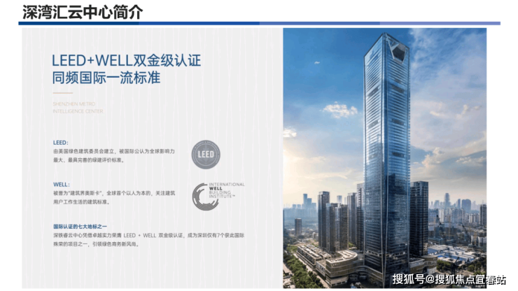 深湾汇云中心位于深圳市南山区深圳湾超级总部基地,是该基地的首发项目, 由深圳地铁集团与万科集团合作投资建设。该项目集高端写字楼、商业、商务公寓、酒店等 多种功能于一体,建筑高度达358.7米,是深圳第九高楼。其建筑外观极具现代感和科技 感,超高层建筑拔地而起,成为深圳湾天际线的重要组成部分。