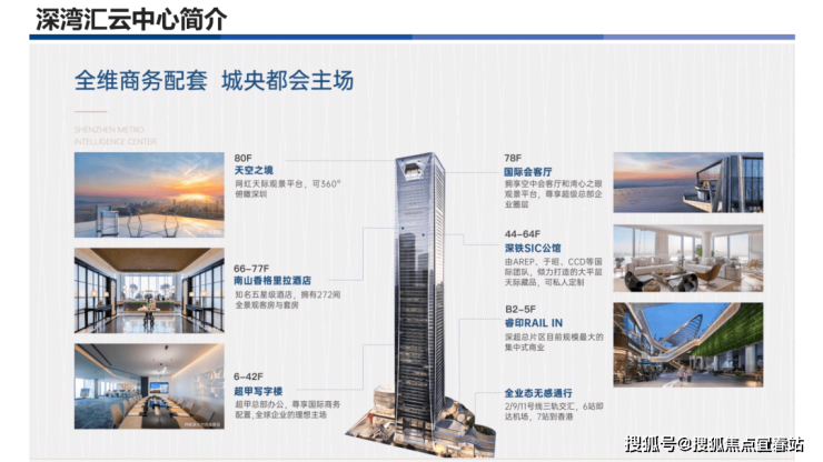深圳SIC超级总部中心/深湾汇云中心项目,由深圳地铁集团与万科集团合作投资建设,中建一局承建,位于南山区深圳湾超级总部基地,有2号、9号、11号3条地铁线汇聚于此,计划总投资153亿元,用地面积约5.4万平米,建筑面积约60万平方米,规划打造集地铁换乘、公交接驳等综合交通功能的TOD上盖物业,业态包括总部办公、商业、酒店和文化设施等。未来,项目将充分利用项目多业态与轨道交通的全方位连接优势,打造成为超级总部片区商务标杆项目。