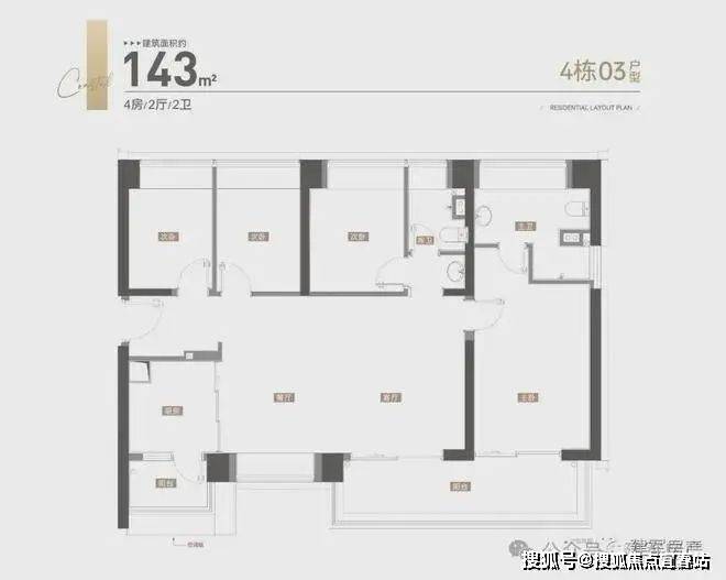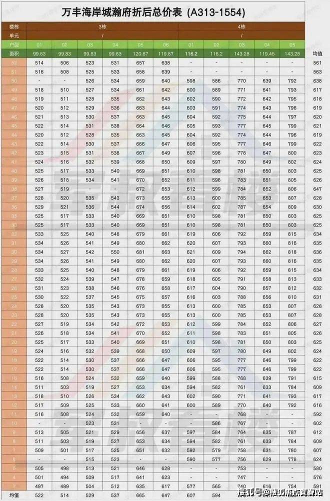 01户型142平4房2卫,02-03户型188平4房3卫,为楼王单位,层高3.15米,3梯3户。