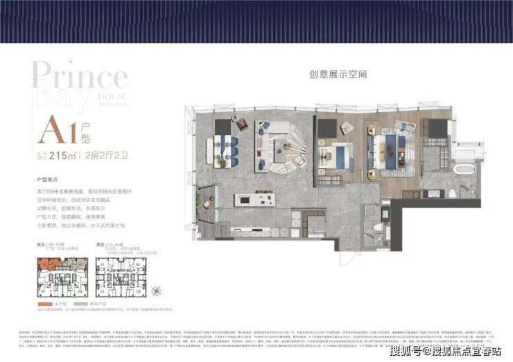 大尺度空间 纵享环幕视野大平面大尺度定位,层高约3.6米,横厅设计确保最大化观景面全户型纵享环幕视野。项目打造主力建面约215-415㎡纯粹品质公寓共191席,顶层为建面约1270㎡公寓产品。