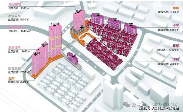 项目规划A区(南区):计容积率建筑面积约2.1万平方米,不计容积率建筑面积约5.2万平方米。包含9栋“院子”别墅,均为地上3-4层、地下3层的结构。此外,A区还规划有幼儿园和商业配套。