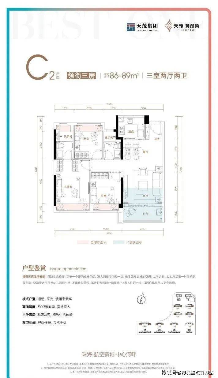 科学规划布局,约90%高得房率