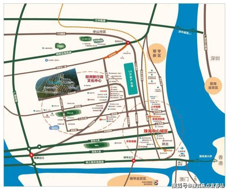 项目坐落于中山南部新城(规划中),毗邻坦洲新行政中心,与珠海紧密衔接,区位发展潜力凸显。距离坦洲大道不足1公里,北接已通车的坦洲快线,全线无红绿灯,南连珠海南湾大道,打通跨城交通脉络,同时实现与中山东部区域无缝衔接,便捷通达湾区各地。