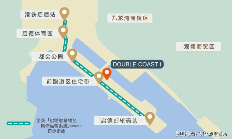 最新施政报告宣布,区内「启德智慧绿色集体运输」将力推提早3年落成,根据规划,整个「系统」全长约3.5公里,以高架模式运行,连接整个PARK PENINSULA至港铁启德站,途经设邮轮码头、PARK PENINSULA住宅带、都会公园、体育园等地,全程仅约10分钟,如果由DOUBLE COAST I位处的PARK PENINSULA出发,估计行车时间会进一步缩短2。