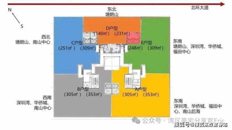 位于南山华侨城北区,南坪/北环/广深/深南快速路网直达前海/机场/深圳湾等核心区,250米接驳2号线。260米天际建筑矗立侨香路,背靠塘朗山、面朝深圳湾,藏风聚财。