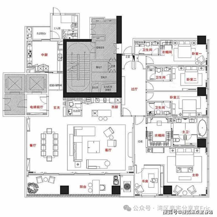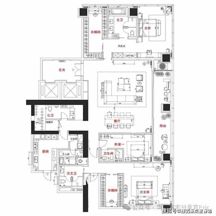 3. 305平4房+书房+工人房3厅5卫(全套房设计,套内约353平米)