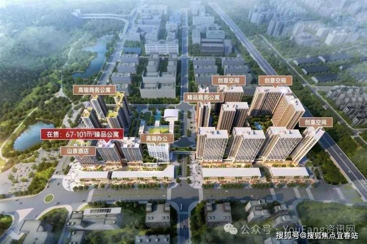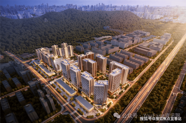 约56万㎡综合体大城,集山景酒店、高端写字楼、 旗舰商业、瞰山公寓为一体的大型城市综合体,打造凤凰山麓封面标杆