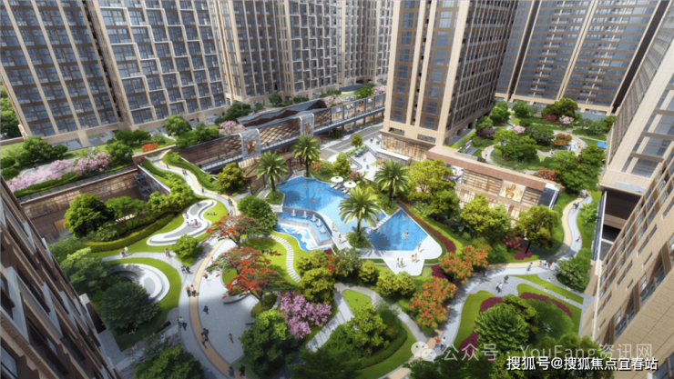 约5.3万㎡园林配套,超3万㎡大型空中花园造景,以“凤凰”为主题打造景观节点,设置多功能休闲空间,包含戏水池、健身休闲区、儿童活动场、架空层休闲泛会所、散步道、休闲廊架